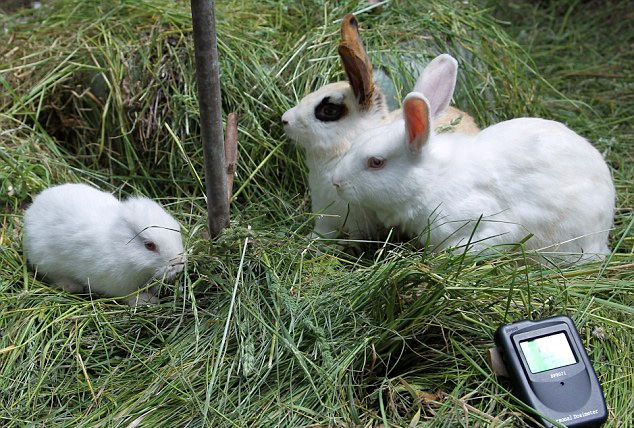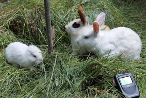 [写真 : 福島第一原発近くで生まれた耳の無いウサギ(左側)]
