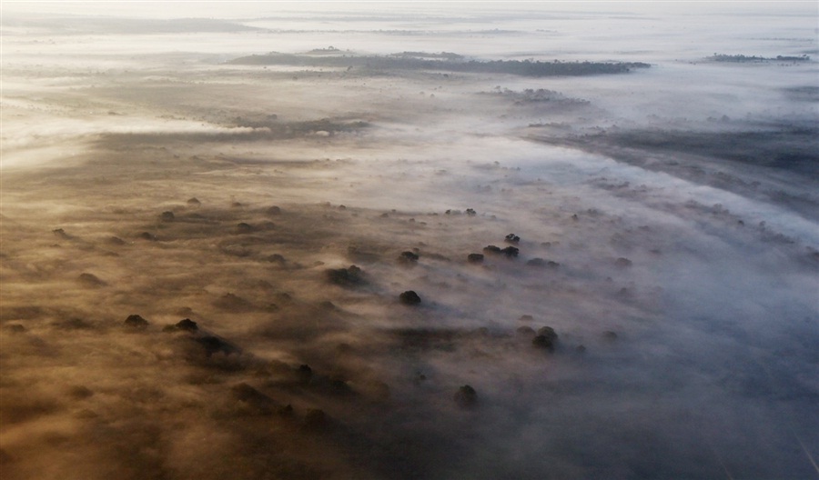 靄に包まれた伐採の進むアマゾン川流域、『雨の森』上空からの写真。今年6月8日撮影