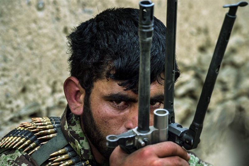 2013年4月2日、戦場の見張りをするアフガニスタン陸軍の兵士。