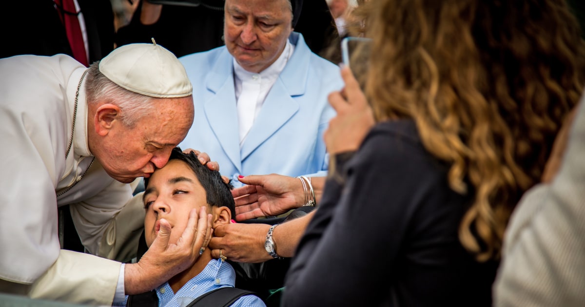 しかし自分を歓迎する人々の中に車椅子に乗った少年を見つけた法皇は車列を止めさせると、自ら歩いて行き、少年の頭を抱きかかえてキスし神のご加護があるよう短い祈りを捧げました。